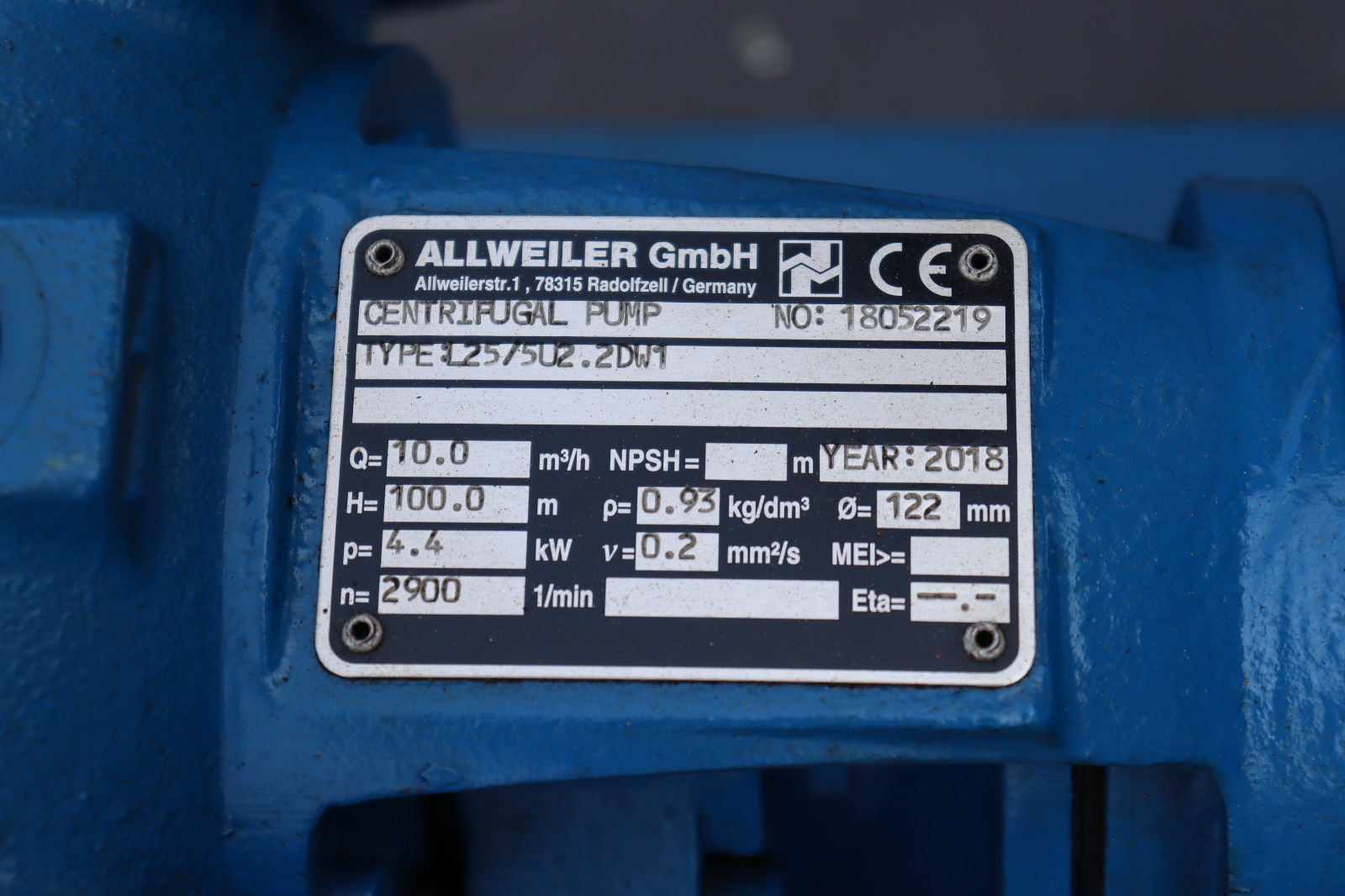 | MAKE | ALLWEILER GMBH (CENTRIFUGAL PUMP ) |