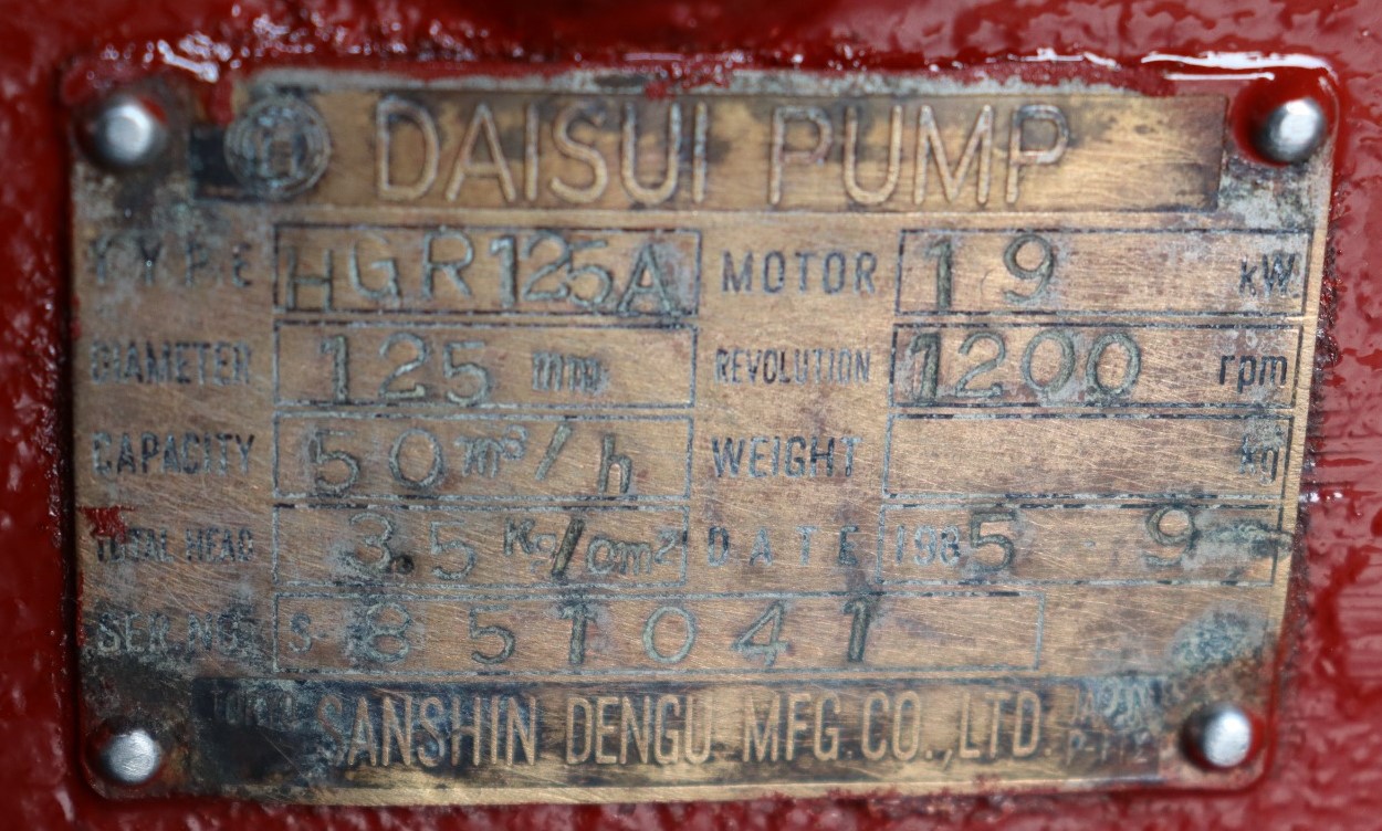| MAKE | DAISUI WATER PUMP (TOKYO SANSHIN DENGU MFG CO. LTD) |